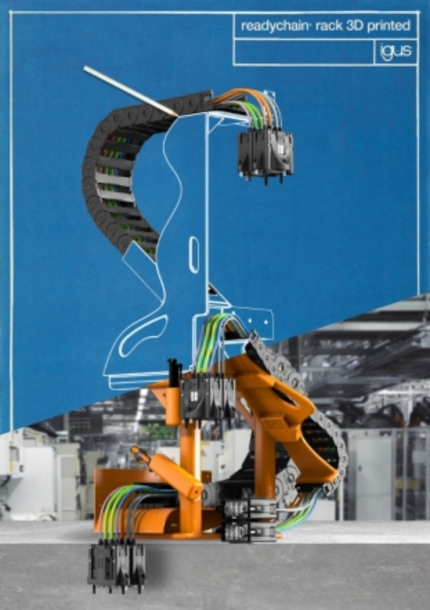 安裝時間縮短66%,重量減輕80%:igus推出首款3D打印裝配拖鏈支架,產品快速可得,且完全根據客戶要求進行設計。(來源:igus GmbH)